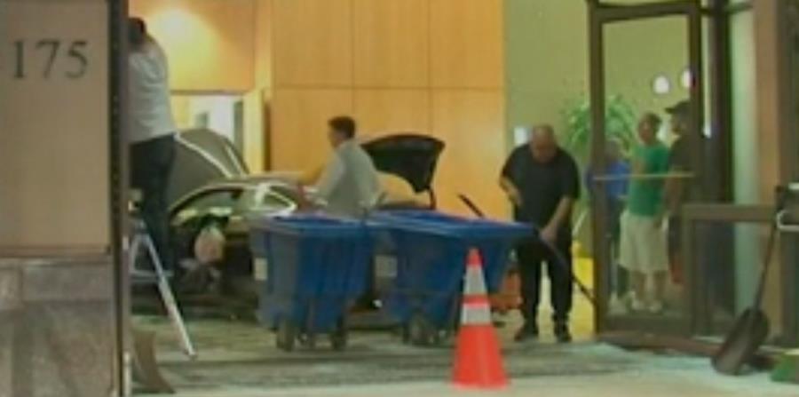 Un automóvil chocó contra el vestíbulo de la torre residencial Trump Plaza en New Rochelle, un suburbio de la ciudad de Nueva York, hiriendo ligeramente a dos personas, informó la policía el miércoles.