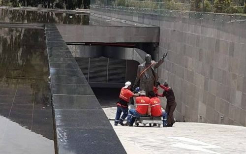 El monumento –de 2,28 metros de altura y unos 600 kilogramos– fue instalado en Quito en 2015, durante el gobierno del ahora exiliado presidente Rafael Correa, quien entonces destacó la «histórica labor integracionista» de Kirchner. Tres años después, el Parlamento ecuatoriano votó su retiro, por 72 votos a favor y 30 en contra, con la intención de “no hacer apología del delito con la presencia del expresidente de la Argentina, considerando que su Gobierno y el de su esposa están envueltos en actos de corrupción», según explicó Byron Suquilanda, legislador del partido CREO.