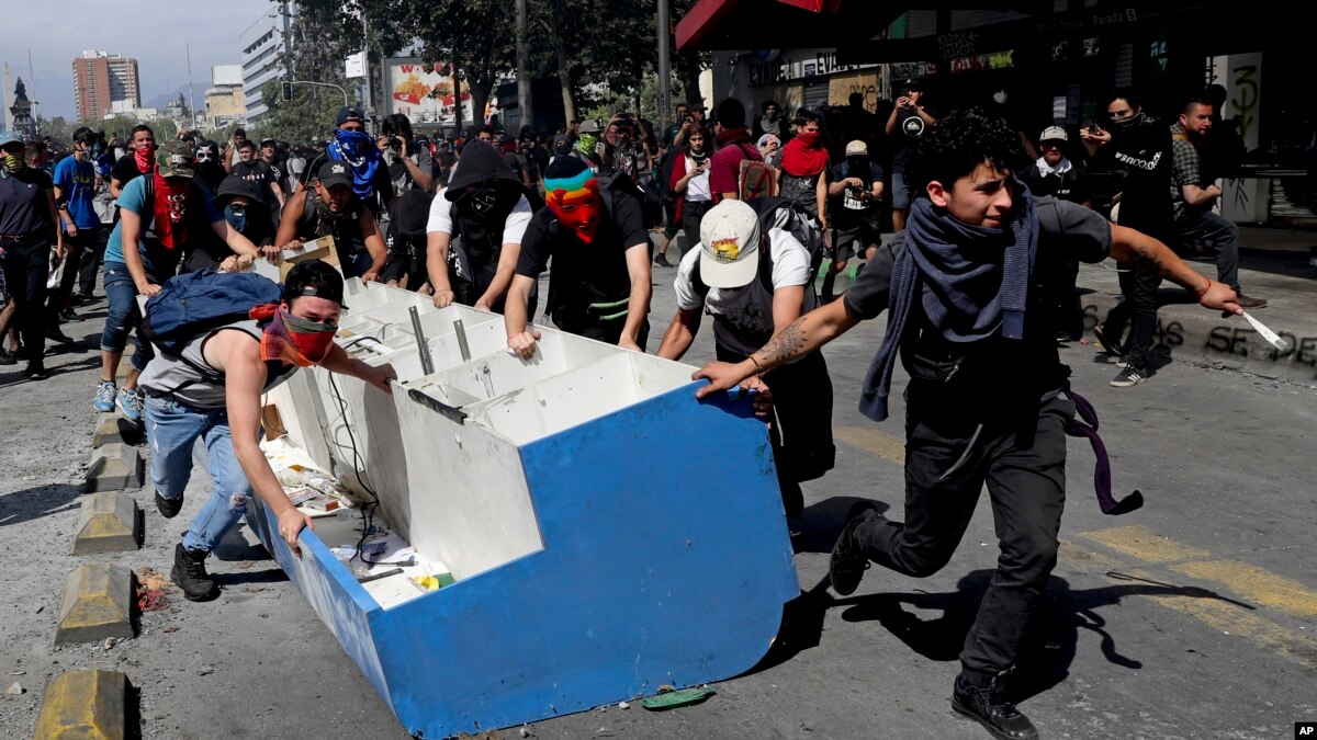 El gobierno de derecha del presidente Sebastián Piñera respondió sacando a los carabineros a las calles y luego de actos vandálicos y saqueos a empresas privadas, declaró un estado de emergencia. Hasta ahora se registran centenares de detenidos, pero la acción policial no ha logrado aún contener los actos de violencia o las protestas.