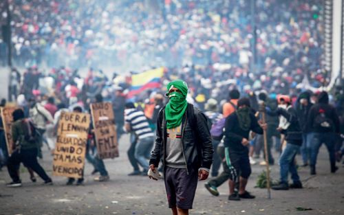El origen de las protestas fue la reforma económica anunciada por el presidente Lenin Moreno el pasado 1 de octubre, fruto del acuerdo alcanzado con el Fondo Monetario Internacional para conseguir una inyección de 4.200 millones de dólares para el país. Los disturbios estallaron dos días después con las marchas de los líderes de la Confederación de Nacionalidades Indígenas del Ecuador (CONAIE), un enfrentamiento entre policías y militares en una de las calles de Guayaquil, y múltiples saqueos. Eso llevó a Moreno a declarar el estado de excepción. Las fuerzas de seguridad detuvieron a más de 72 personas, y desalojaron los campamentos improvisados en el parque El Arbolito (la “Plaza de Mayo” ecuatoriana) y la Casa de la Cultura.