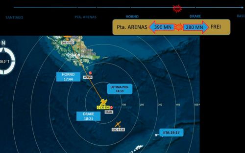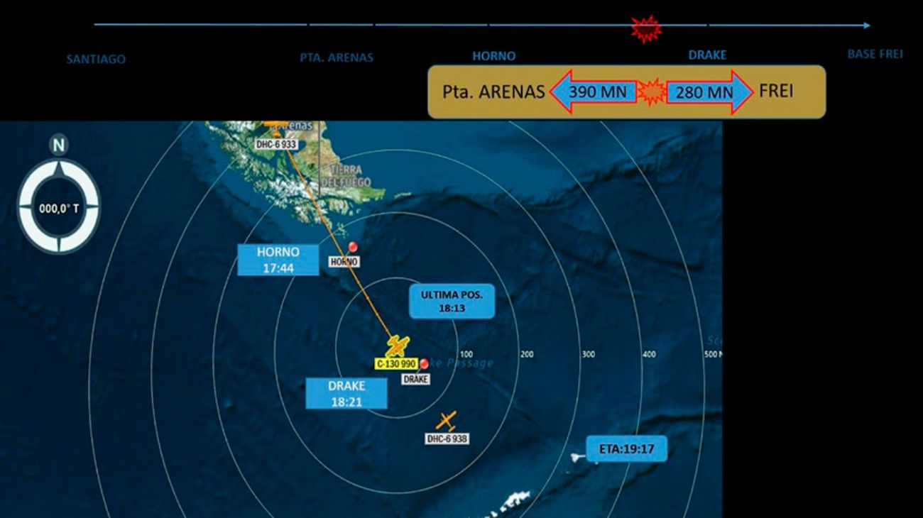 «La Fuerza Aérea de Chile informa que una aeronave C130 Hércules despegó a las 16H55 (19H55 GMT) desde la ciudad de Punta Arenas, hacia la base Antártida Presidente Eduardo Frei», indicó el primer comunicado de la Fach. «A bordo del C130 Hércules viajan 38 personas, de las cuales 17 son tripulantes de la aeronave y 21 pasajeros», agregaban.