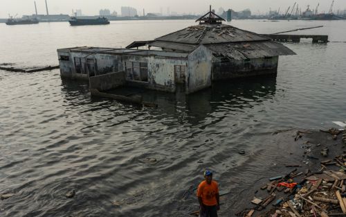 Irma Susanti vive a pocos metros de un muro de concreto que apenas evita que el agua inunde su barrio en el norte de Yakarta, la capital de Indonesia. Hace unos años, las autoridades elevaron el muro en casi un metro hasta dejarlo de 2,3 metros de altura. Pero incluso eso a veces no es suficiente para evitar que el agua maloliente y de color marrón oscuro entre en su casa como una lluvia torrencial. Del otro lado del muro, la superficie está cubierta de una gruesa capa de basura: neumáticos, ojotas, vasos de plástico usados, bolsas de polietileno y condones.