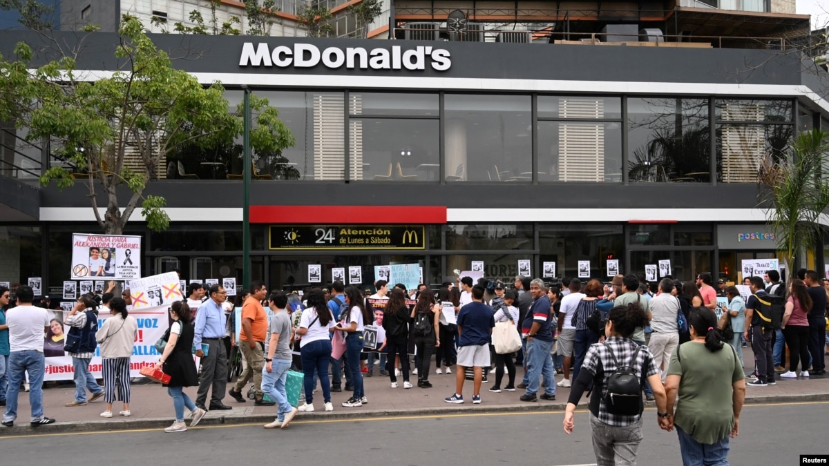 “Justicia para Alexa y Gabriel”, decía otro cartel. Ambos fueron novios y trabajaban en el local desde hace meses, según un familiar. La abogada de las víctimas, Elizabeth Carmona, dijo que pidieron el viernes a la fiscalía la detención preliminar de los representantes de McDonald´s y de Arcos Dorados en Perú.