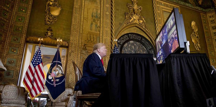Lo hizo en una videoconferencia con miembros del servicio de las cinco ramas desde su club privado en Florida, en donde pasa una vacación de más de dos semanas.