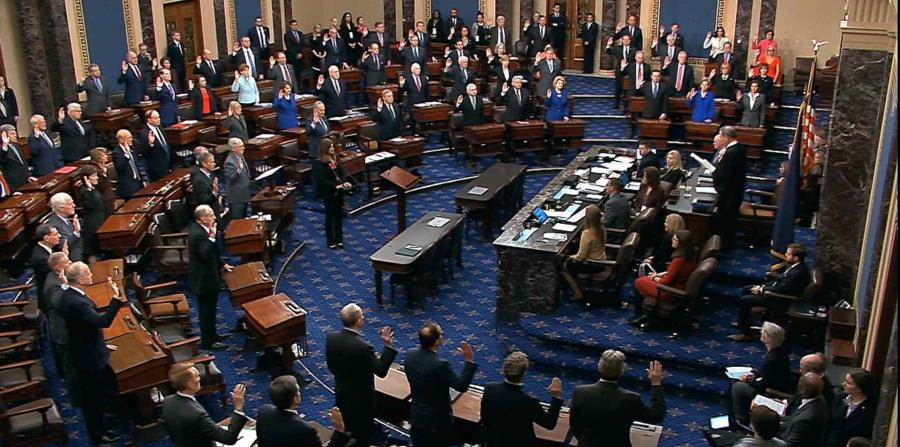 Esas son las reglas del Senado durante el juicio político al presidente Donald Trump. El proceso comenzará con una antigua frase procedimental: «A todos los presentes se les ordena mantener silencio, so pena de encarcelamiento». Seguidamente, los 100 senadores tendrán que sentarse en sus escritorios durante horas para escuchar a la parte acusatoria, a los abogados de Trump y posiblemente a varios testigos.