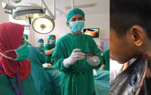 El equipo de médicos del Hospital Wahidin Sudirohusodo en Makassar, la capital y mayor ciudad de la provincia de Célebes Meridional, en Indonesia, logró quitar el ‘hocico’ de este pez en una intervención realizada el lunes 20 de enero, según consignó el sitio local de noticias Makassar.terkini.id.