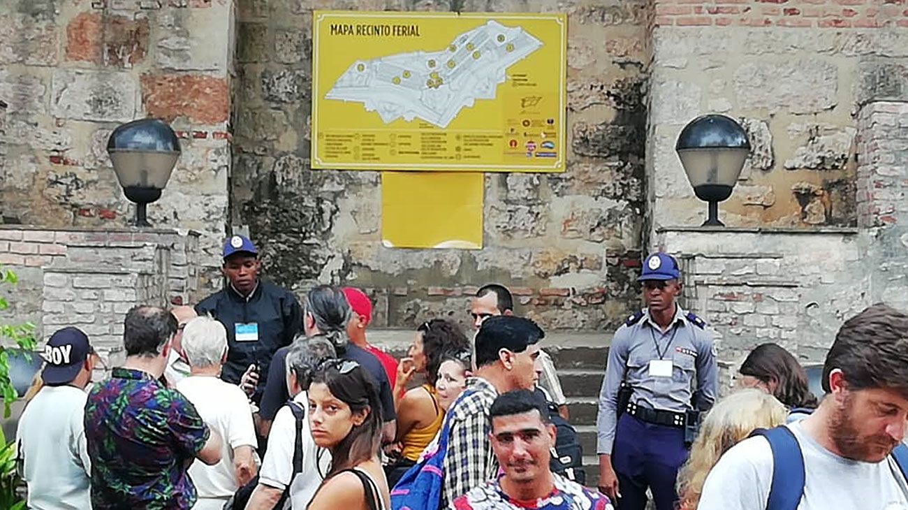 En este sentido nosotros, como muchos, nos quedamos fuera del evento y pasamos a ser espectadores de la situación fuera de la sala. Un ambiente frustrante la verdad: un grupo de policías en la entrada solo permitía el pase de aquellos “afortunados” que poseían invitación. Una segregación del personal: este sábado en la Feria Literaria de La Habana existían dos tipos de personas “los invitados a la presentación del Libro de Cristina”–identificados por un pequeño papel blanco– y los otros “ no invitados”.