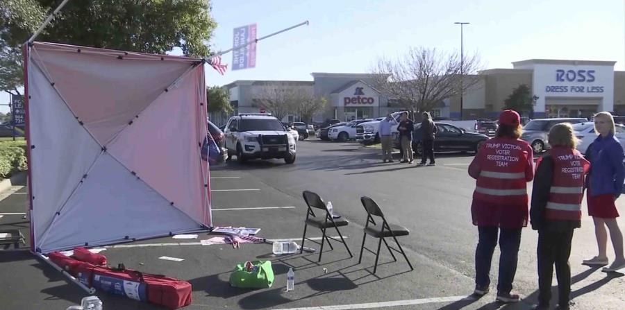 El puesto de registro para las elecciones de noviembre de 2020 estaba situado en el estacionamiento de un supermercado.