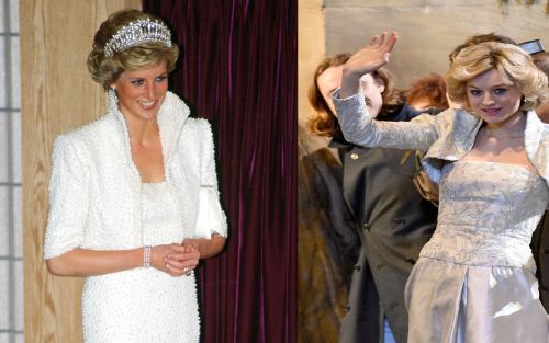 Se trata de un vestido largo, combinado con chaqueta bolero de manga francesa a juego. Sin embargo, el modelo que se verá en la ficción es un poco más discreto que el original, firmado por Catherine Walker, la favorita de quien fuera la mujer de Carlos de Inglaterra y ahora, una de las preferidas de Kate Middleton.