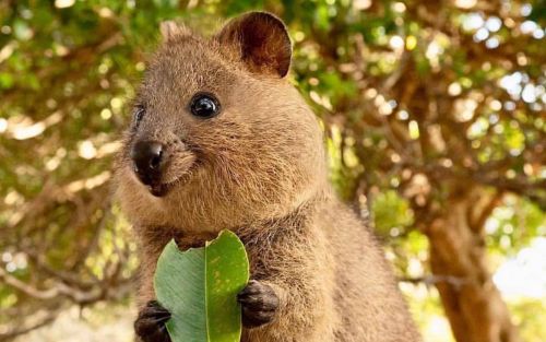 El quokka, un marsupial australiano, está considerado como el animal «más feliz» del mundo. ¿El motivo?: posee tiene una curvatura muy particular en su hocico que hace que parezca que está siempre sonriente. Sumado a esto, es muy sociable y amigable. Muchas celebrities compartieron en sus redes sociales fotos con ellos y esto los hizo cobrar aún más notoriedad.