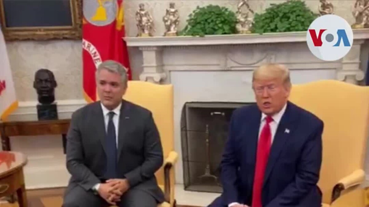 En una comparecencia conjunta ante los medios, Trump sostuvo que Venezuela es un «asunto importante» para Washington y aseguró que Washington está colaborando con otros muchos países, «incluido Colombia», para hacer frente al brote del coronavirus ante su posible propagación por la región.