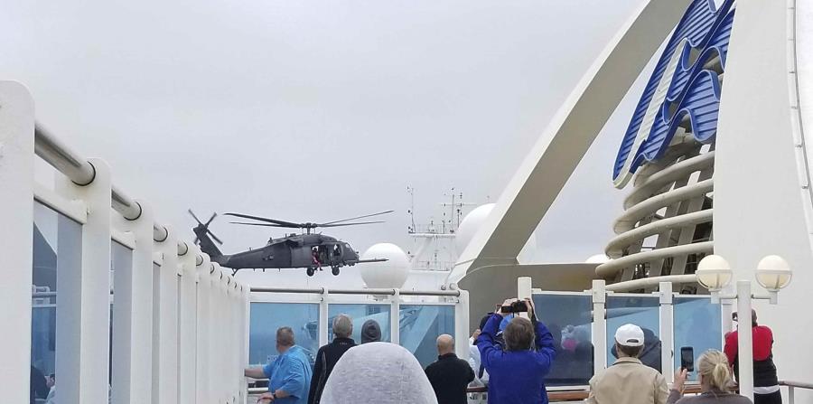 Michele Smith, una pasajera del Grand Princess, publicó un video en Facebook del helicóptero que llegó al buque. Otro video mostraba a un tripulante con guantes y mascarilla rociando y limpiando un barandal.