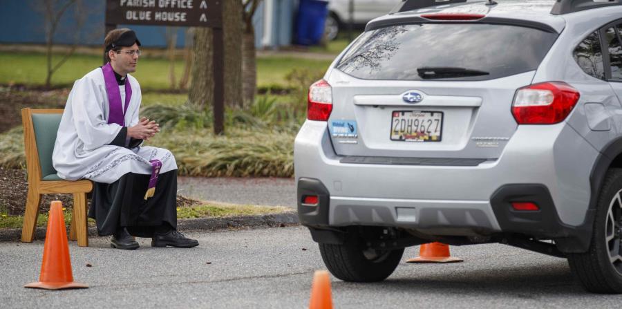 El religioso Scott Holmer se sienta desde esta semana en el aparcamiento de su parroquia en la ciudad de Bowie, con los ojos tapados para preservar la intimidad de los fieles, y desde allí escucha las confesiones de los creyentes a bordo de sus vehículos.