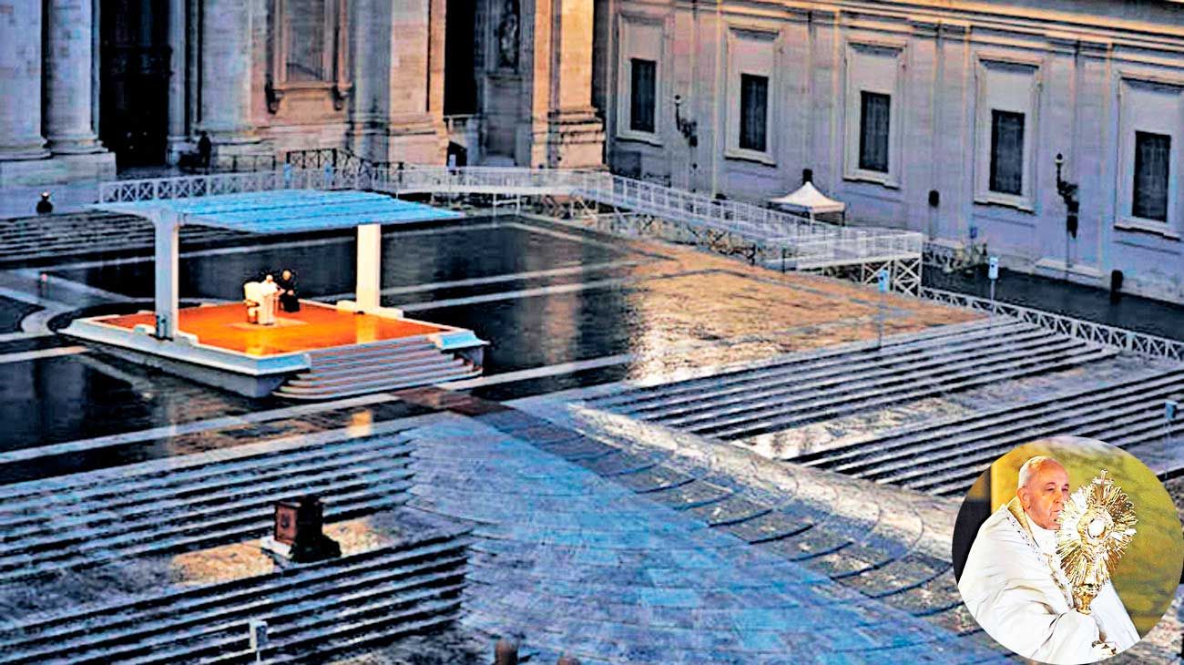 Por primera vez en la historia milenaria de la Iglesia católica, el Papa rezó ayer en solitario ante la inmensa plaza vacía de San Pedro y dio la bendición urbi et orbi, que solo se imparte el 25 de diciembre y el Domingo de Pascua, fechas en que se recuerda el nacimiento y la muerte de Jesús, y la indulgencia plenaria al mundo por la pandemia de coronavirus que lo azota.