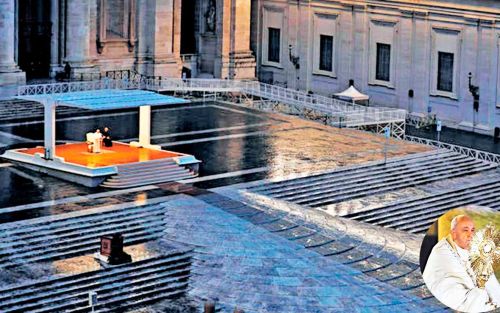La imagen del jefe de la Iglesia católica rezando solo ante la inmensa explanada por el fin de la guerra contra un enemigo invisible que ha causado 25 mil muertes hasta ahora resultó casi cinematográfica.