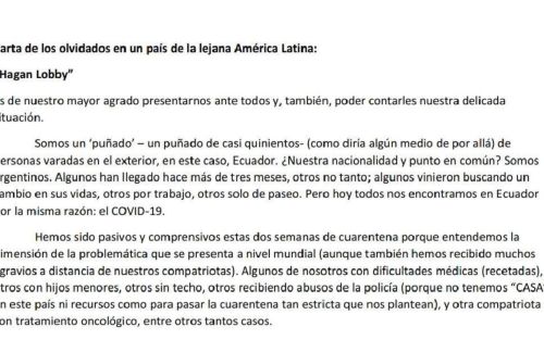 «Carta de los olvidados», el escrito de los argentinos varados en Ecuador