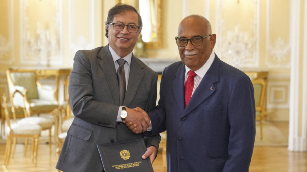 El embajador de Venezuela en Colombia, Carlos Eduardo Martínez Mendoza, presentó el martes sus credenciales ante el presidente colombiano, Gustavo Petro.