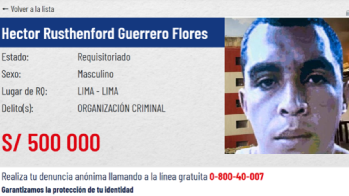 Héctor Guerrero tiene una notificación roja de la Interpol y puede ser detenido en Perú por el delito de liderar una organización criminal, informó posteriormente el ministro del Interior Vicente Romero a periodistas.