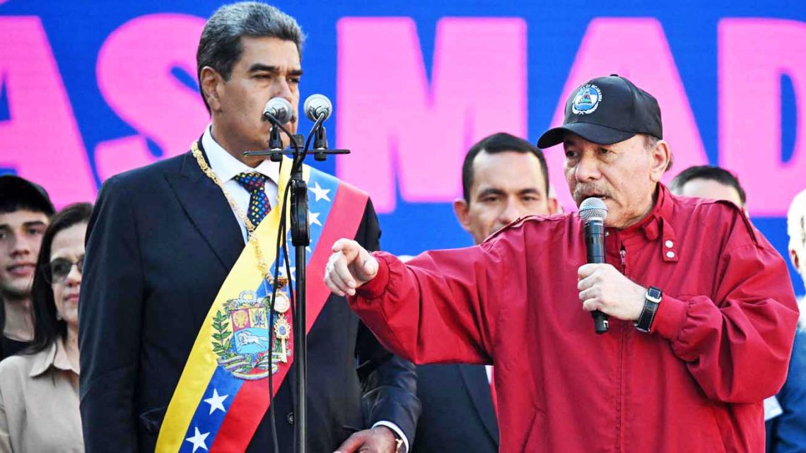 “¡Aquí está el héroe, aquí está el revolucionario Nicolás Maduro Moros, y aquí está Chávez, y aquí está Bolívar”, exclamó Ortega desde una tarima donde acompañó al mandatario venezolano a celebrar su juramentación.