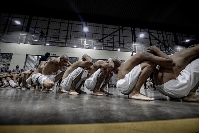Fotografía sin fecha del Gobierno de El Salvador muestra a pandilleros en la megacárcel CECOT.GOBIERNO DE EL SALVADOR